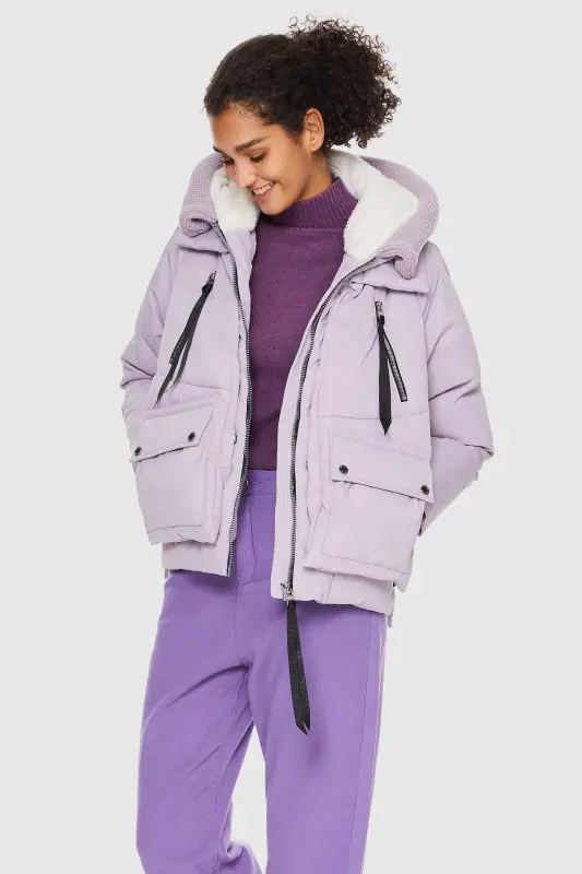 • The hood is equipped with a stand collar and lined with cozy fleece, offering additional protection against the elements. The knit brim of the hood can be folded downwards, creating a versatile and trendy look.