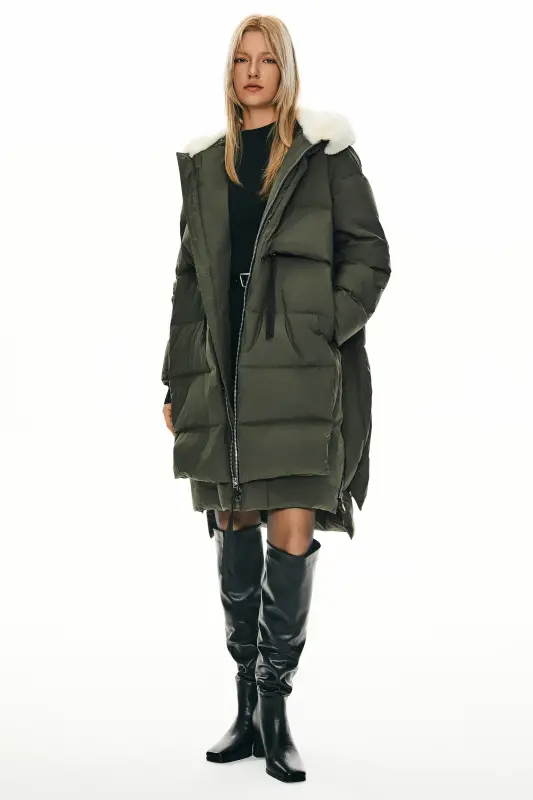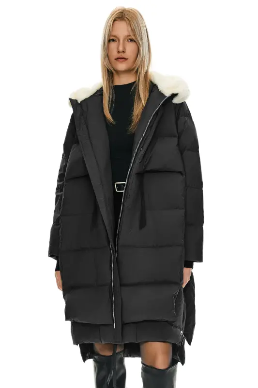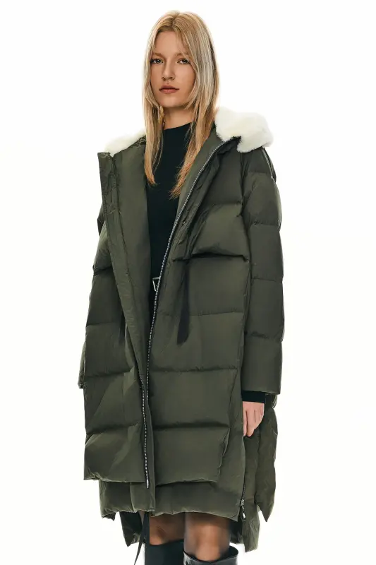 - Our long puffer jacket is filled with 90% duck down and 10% feathers to provide exceptional insulation. The 700+ down filling is designed to trap heat while maintaining breathability, keeping you comfortably warm even in freezing temperatures.