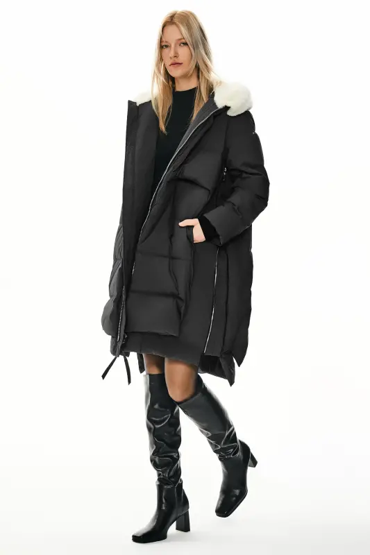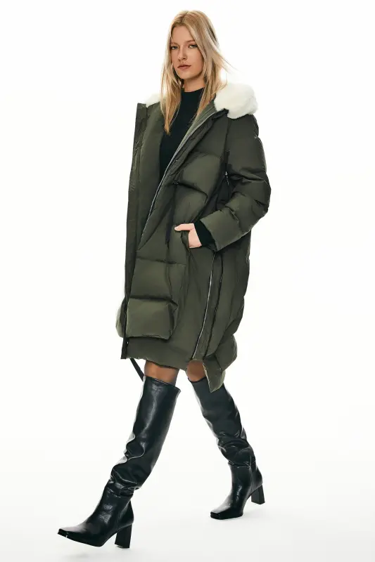 - The warm jacket features a faux fur trim and extended side, staying cozy and fashionable. The front two-way zipper closure and elasticized cuffs ensure a secure fit, while the 6 pockets provide ample storage for your essentials.