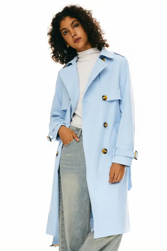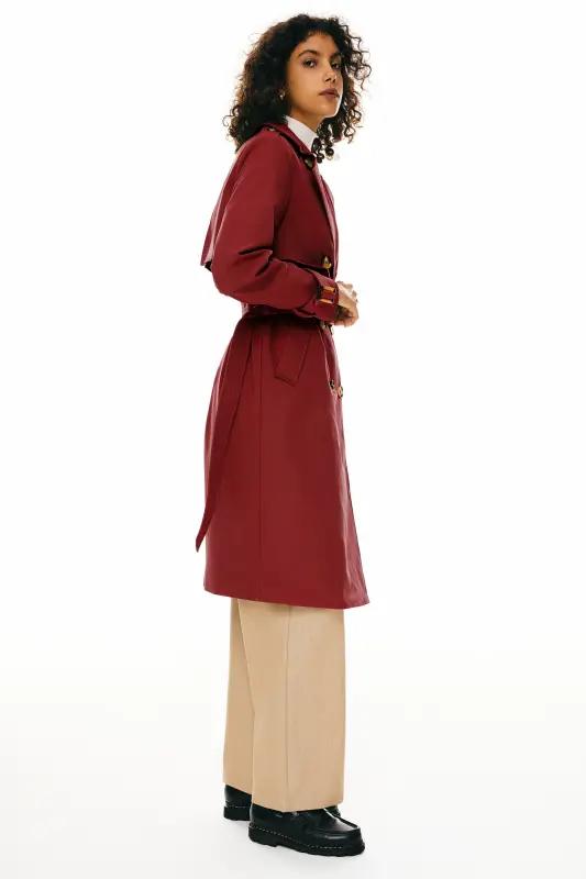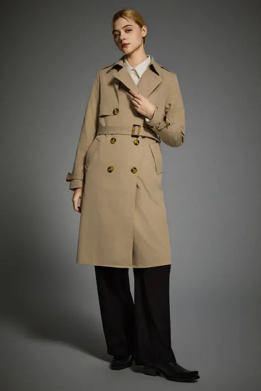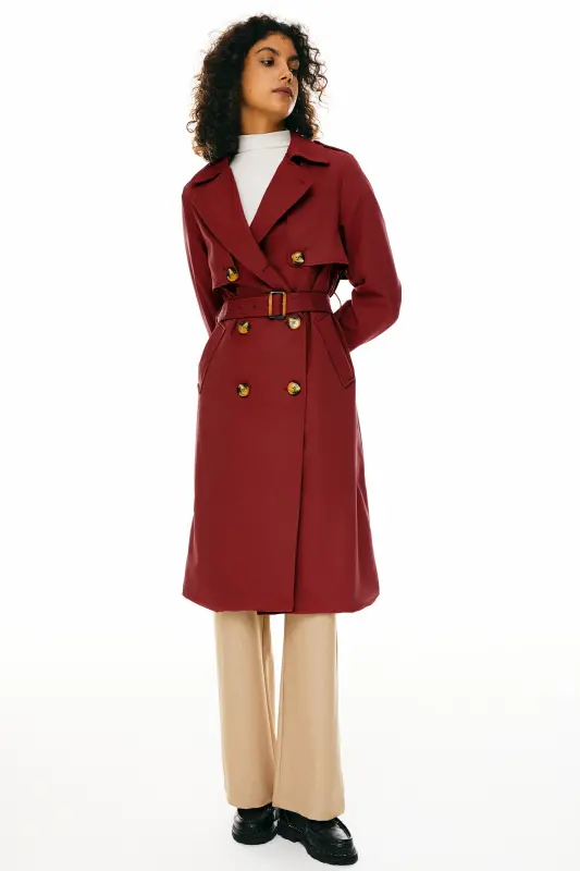 - The double-breasted and six button design make this coat more attractive and fashionable. The midi length is popular and stylish, and features a belt to flatter your natural curves.