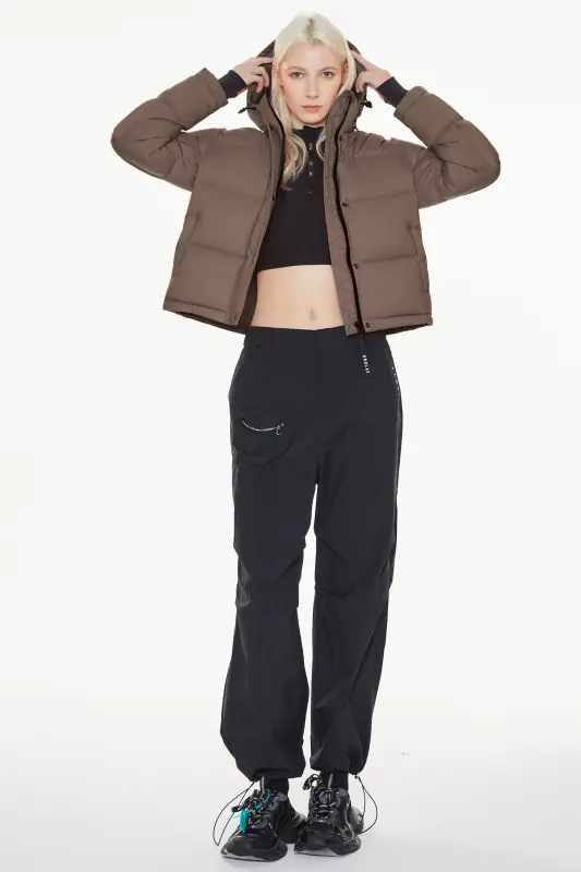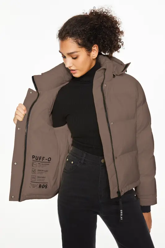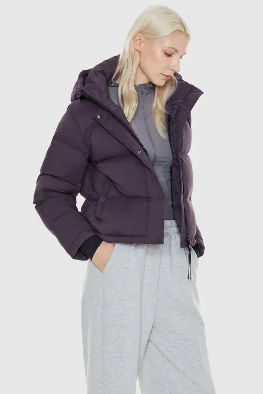 - Crafted with a shell made of 100% polyamide and filled with 90% white duck down and 10% feathers, this Aurora Cropped Lightweight Therminal Puffer Jacket offers exceptional insulation without weighing you down.