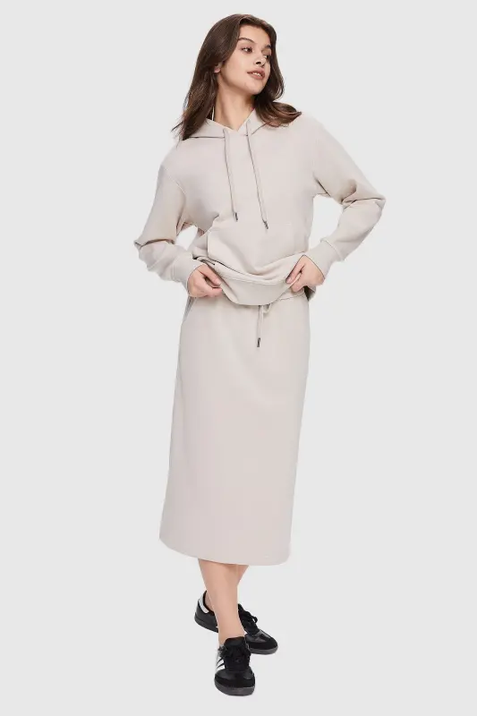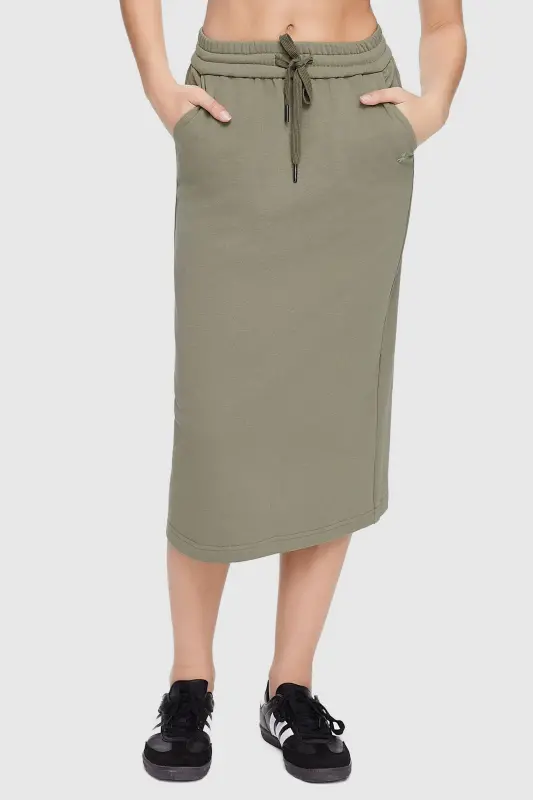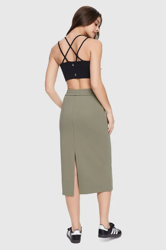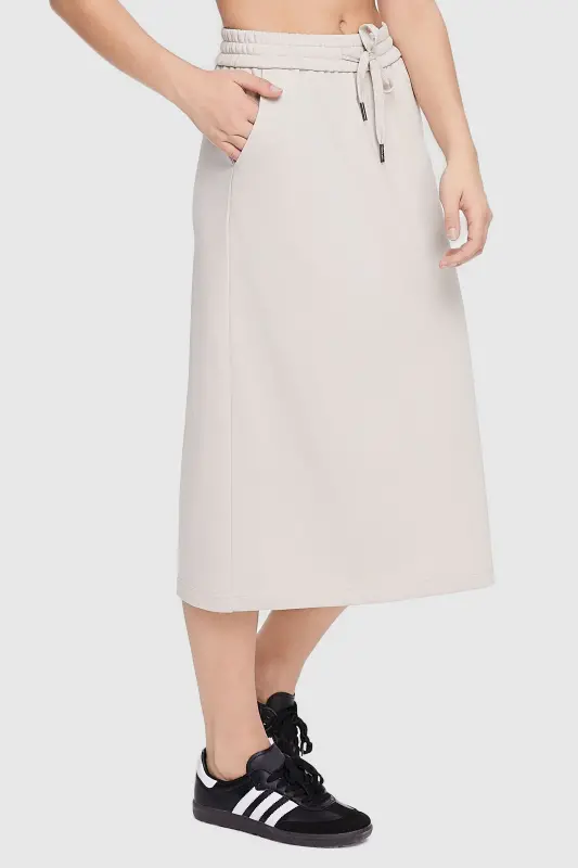• The midi athletic skirt is crafted from moisture-wicking fabric, keeping you dry and fresh during workouts or outdoor adventures.