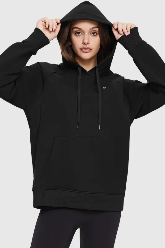 - Equipped with kangaroo pockets, this workout top for women offers convenient storage space for your essentials. The drawstring allows you to adjust the hood for a customized fit.