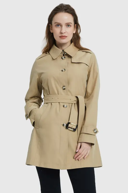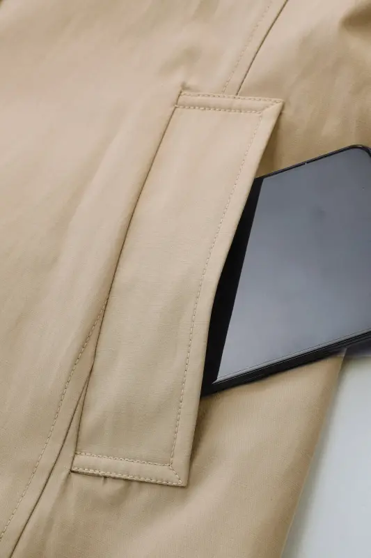 - The trench coat is crafted from water-repellent fabric, which makes it soft, skin-friendly, and breathable. With a single-breasted closure, and 2 side pockets that can help you store your essentials and valuables.