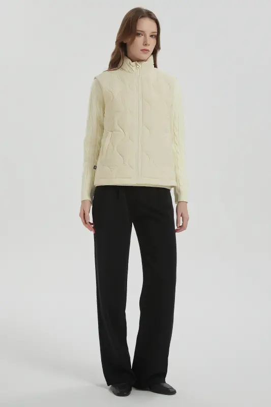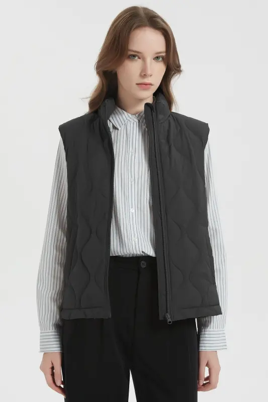 • Down Insulation: The women’s puffer vest features 90% duck down with 700+ fill power, providing superior warmth and insulation while maintaining a sleek silhouette.