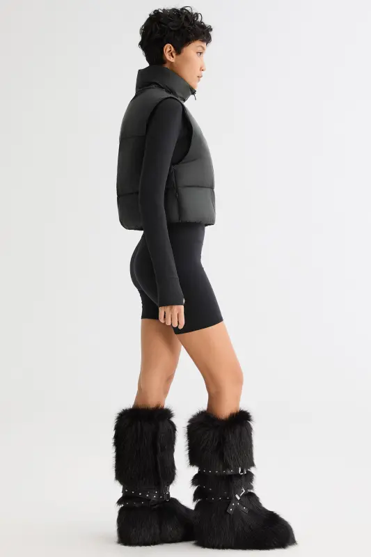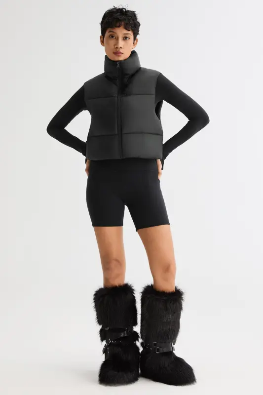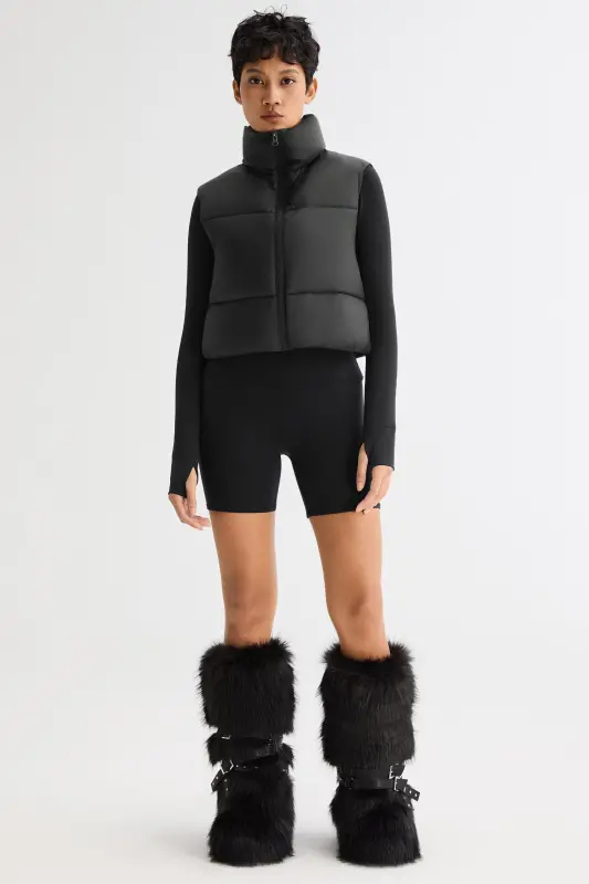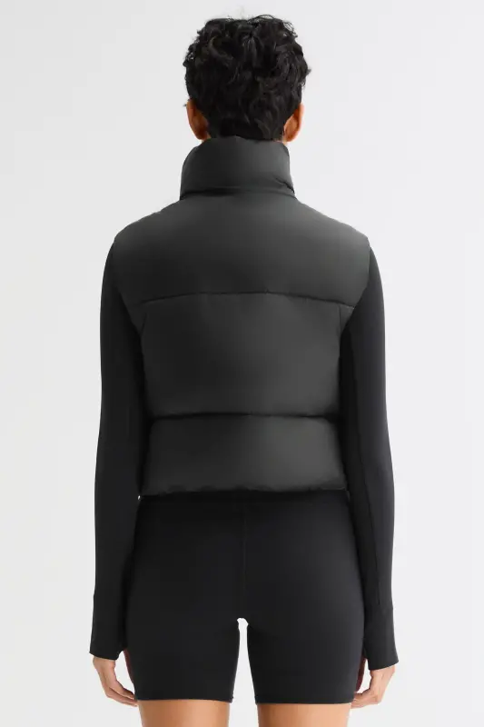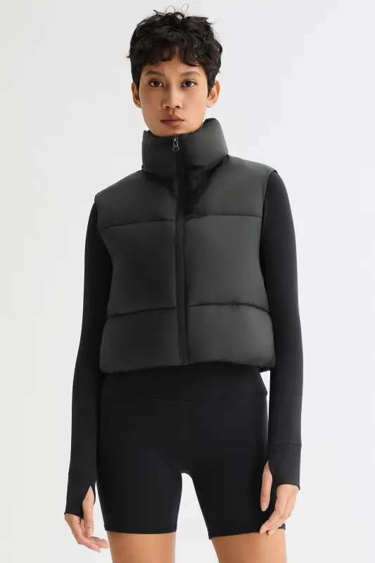 - The casual crop puffer vest has a stand collar with a full zip and elastic hem to lock in the warmth. The waist-length design and contoured fit help to flatter your figure. Perfect indoors or out, a lightweight puffer vest jacket is a warm and comfy must-have that spans the seasons.