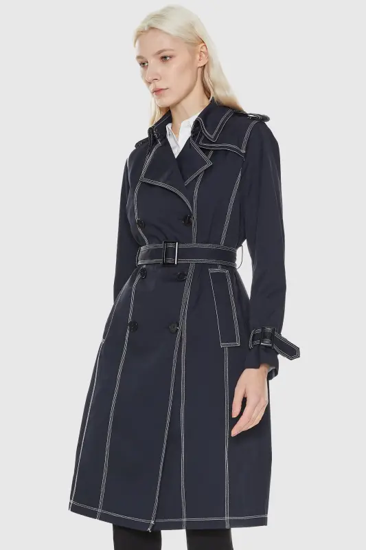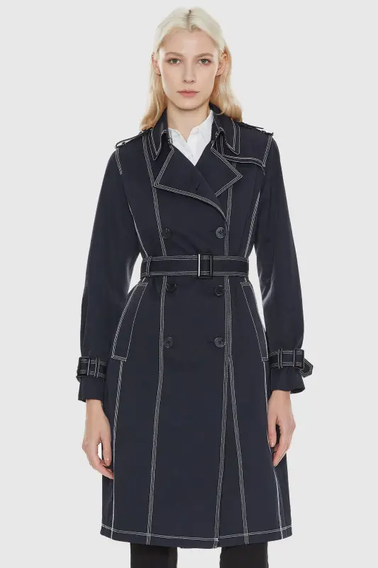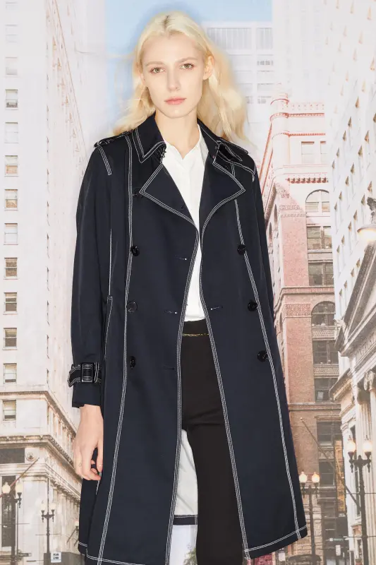 - Contrast stitching details on this women’s mid-length trench coat create a dynamic look, ensuring you make a statement at any event, aligning perfectly with the allure of women’s trench coat fashion.