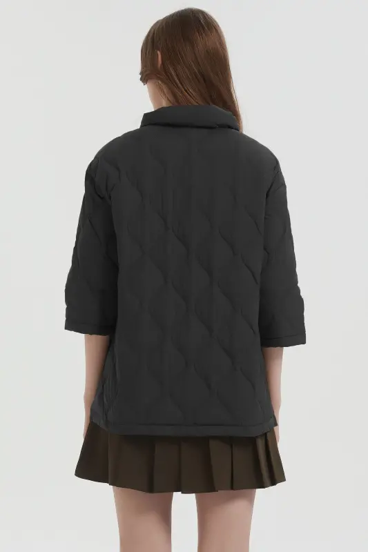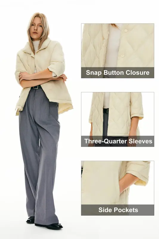 - Chic Three-Quarter Sleeves: The unique three-quarter sleeves add a touch of sophistication to this women’s oversized quilted jacket, offering a stylish twist to your ensemble.