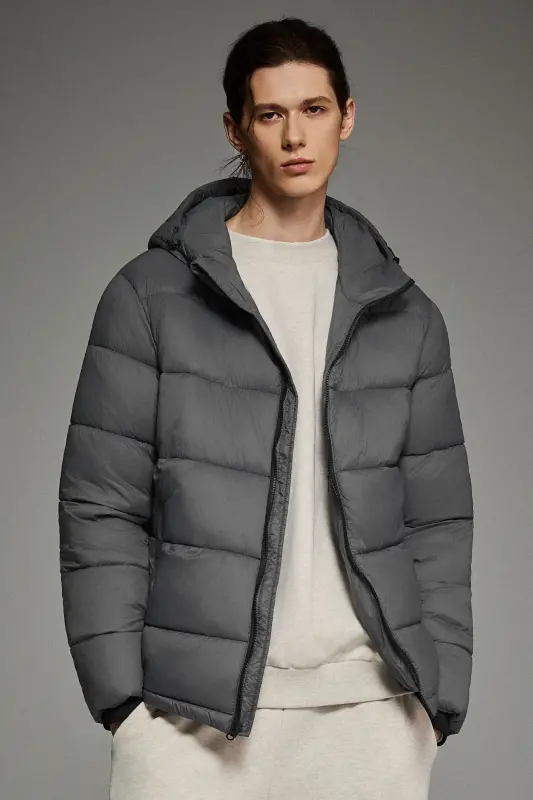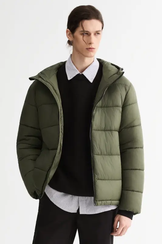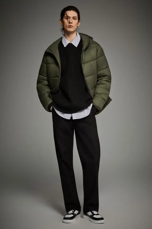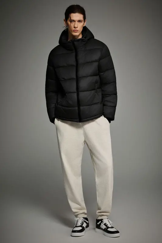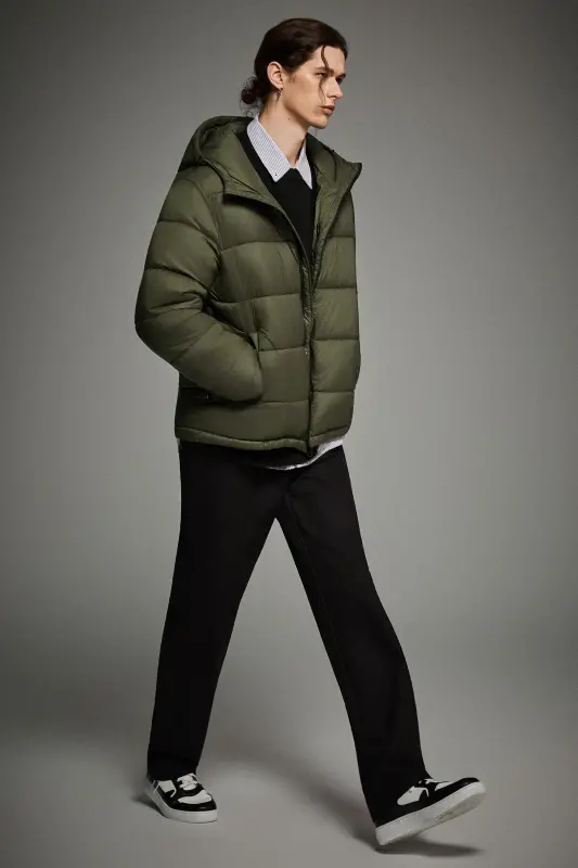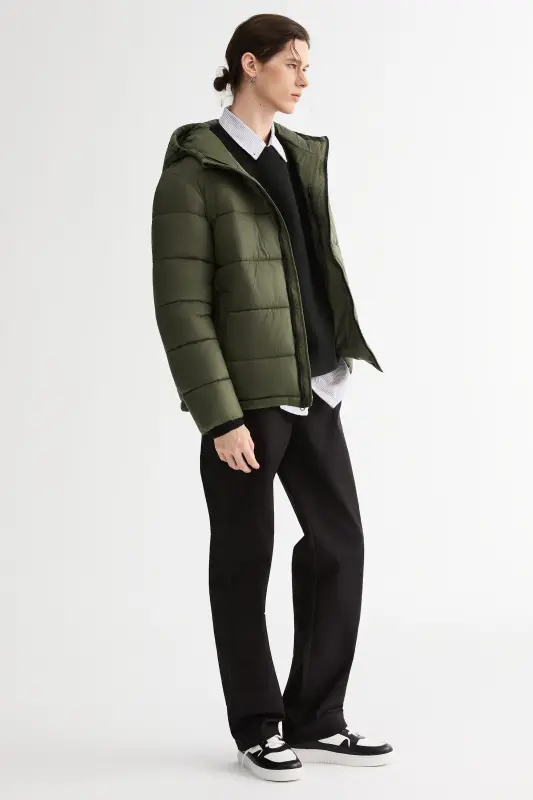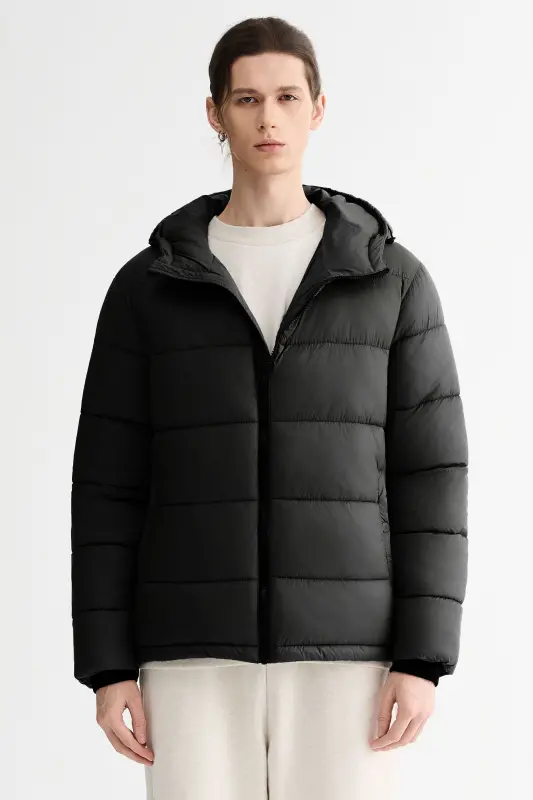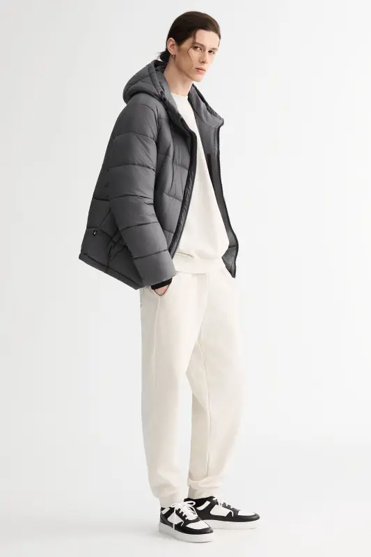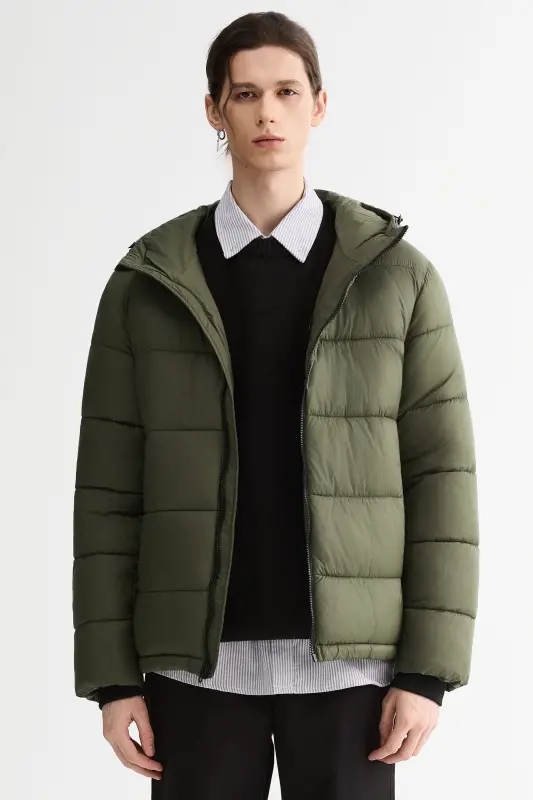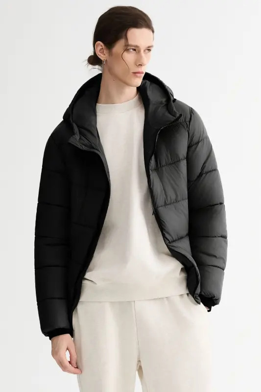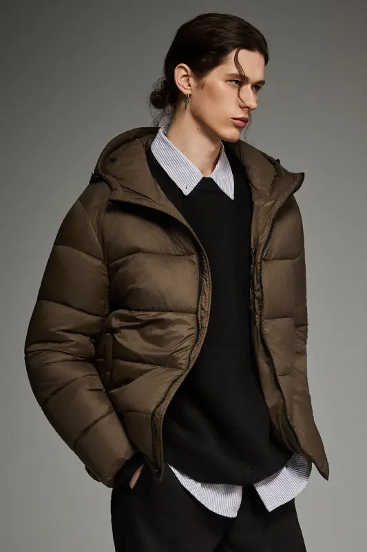 - Men’s Relaxed-Fit Hooded Puffer Jacket:A cropped-length puffer designed for a roomy, ultra-soft feel—perfect for laid-back, everyday style with added warmth.