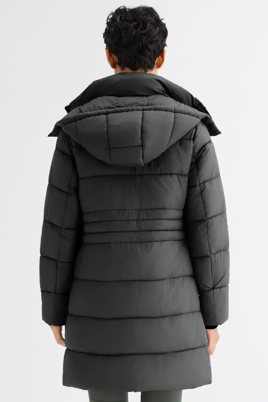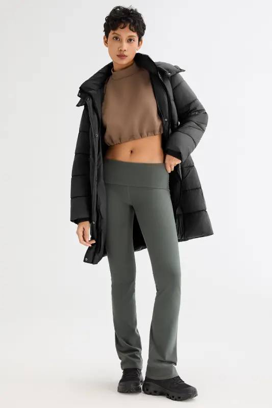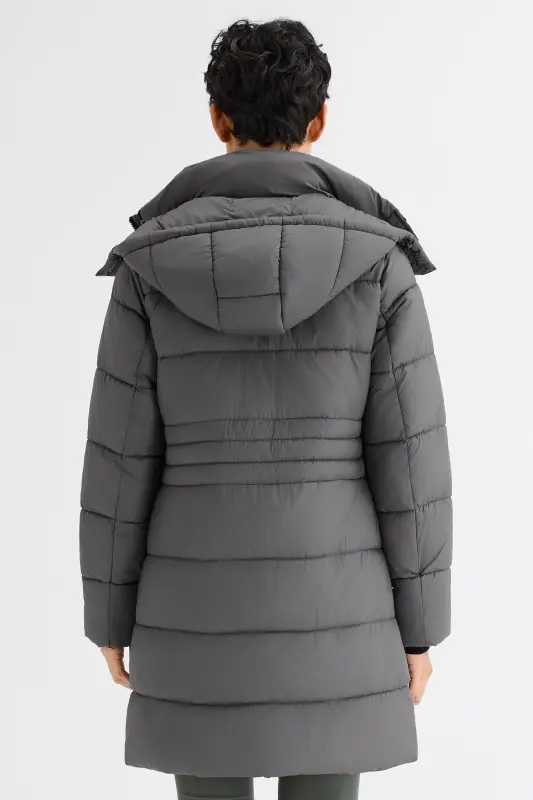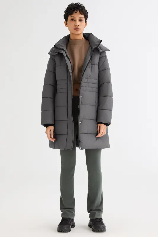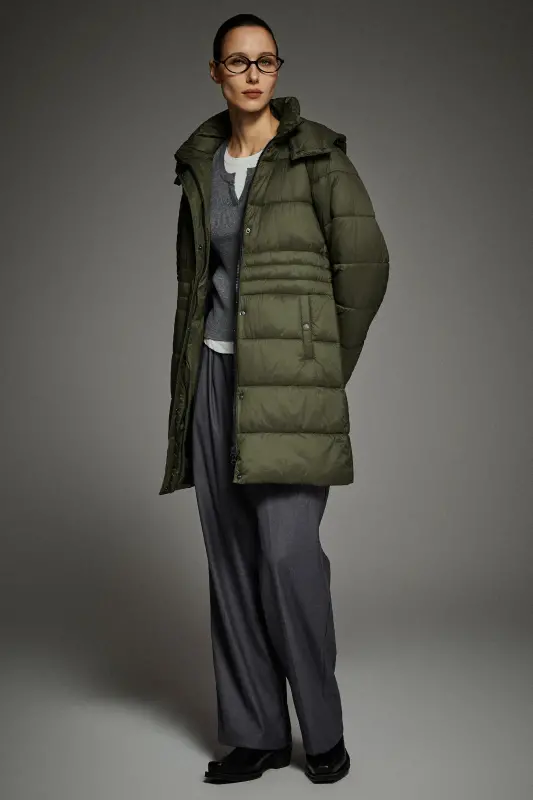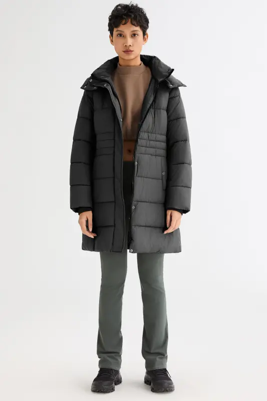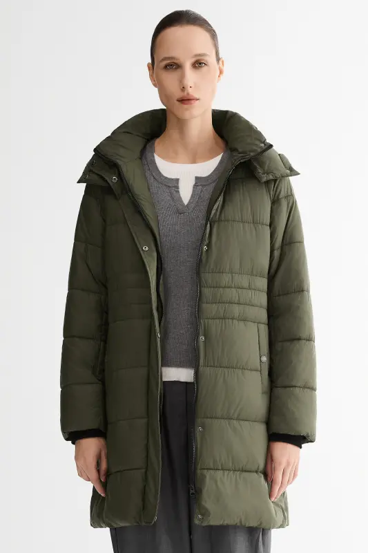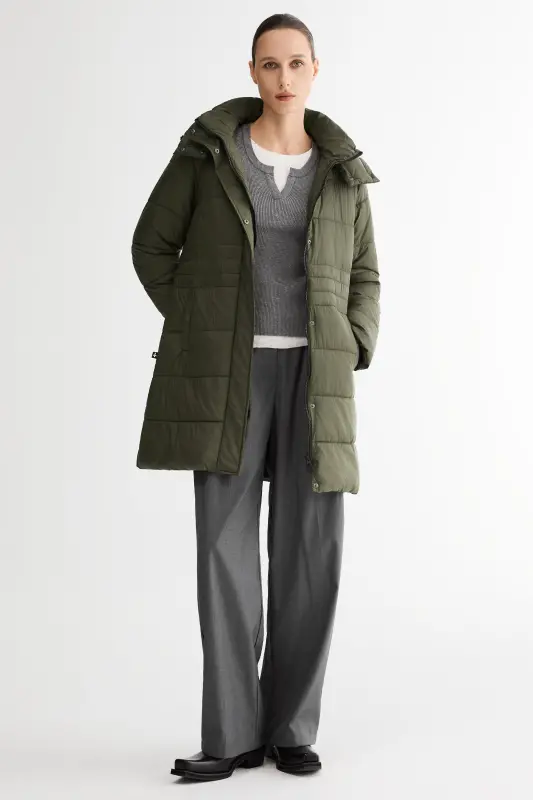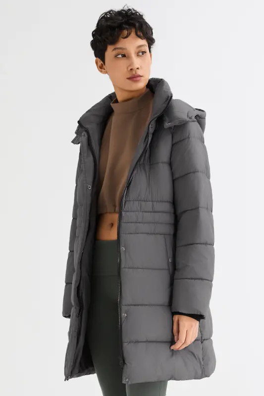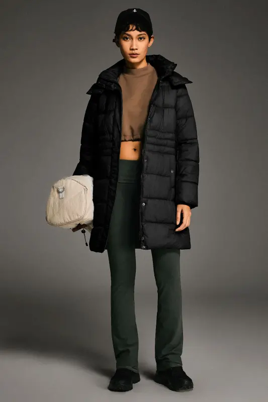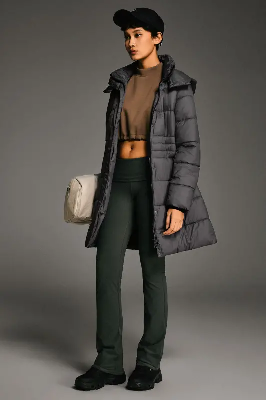 - Slimming Quilted Design:Vertical quilt lines at the center create a flattering silhouette by gently cinching the waist and elongating the legs. The extended cut falls just below the hips for balanced coverage and refined layering.