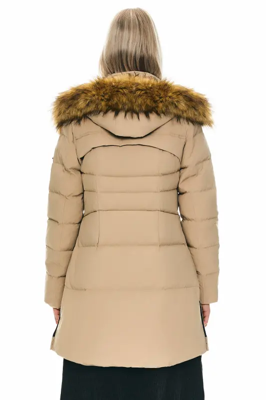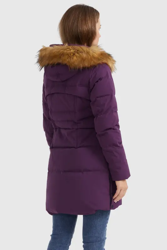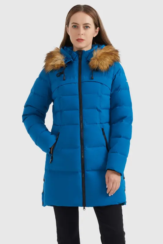 This down coat comes with a removable faux fur trim hood and button extension side, which means you can adjust the fit to your own needs. Two zipper pockets provide plenty of room to store your belongings while internal security pockets allow you to keep your valuables safe. Our insulated down jacket is perfect for both indoor and outdoor use! Windproof and resistant to water, snow, and dust, you can wear it on your skiing, hiking, or camping trips or when traveling during the autumn, cold season, or early spring.