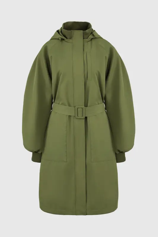 • This women’s belted trench coat features a buckle waist belt that not only maintains a clean and minimalist appearance but also serves the practical purpose of allowing the wearer to adjust the fit for comfort and style.