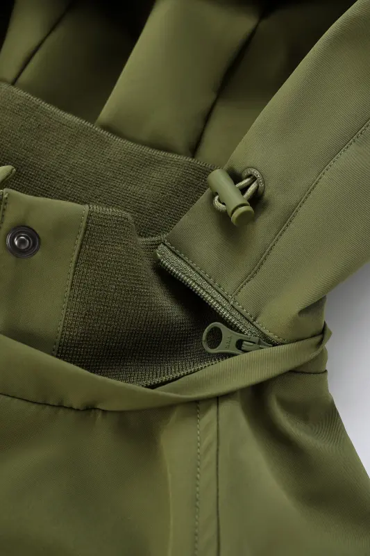 • The ribbed detailing on the casual jacket’s collar and cuffs, along with the pleats on the back of the chicken-leg sleeves, infuse a youthful and sporty vibe into the traditional design.
