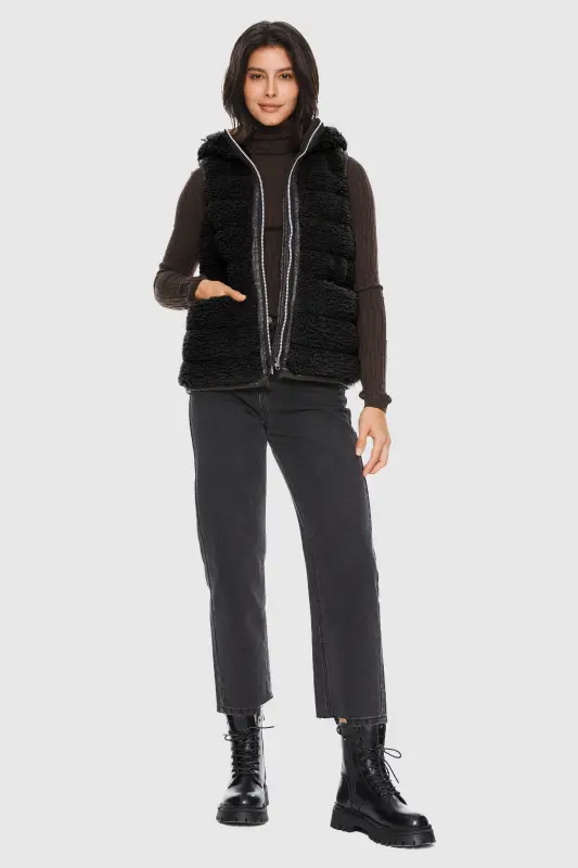 This winter fleece vest has a skin-friendly and soft fabric with the feel of teddy bear fleece, lighter than traditional fabric, making the fleece down vest fluffy and warm. It also combines the down jacket craftsmanship and is filled with down, which is fashionable and warm.