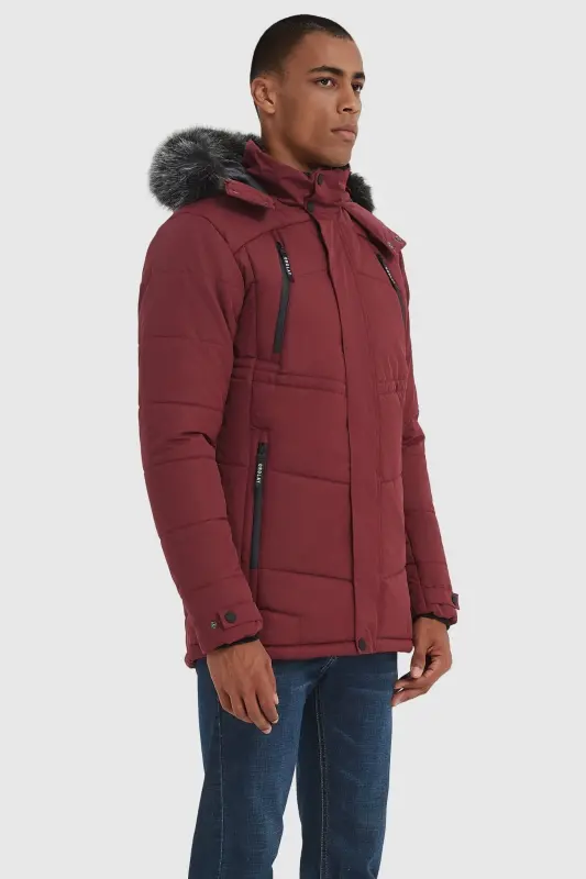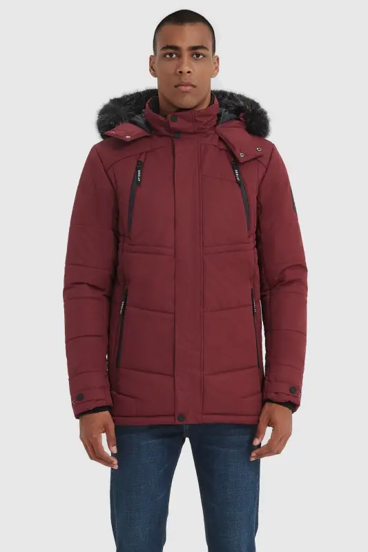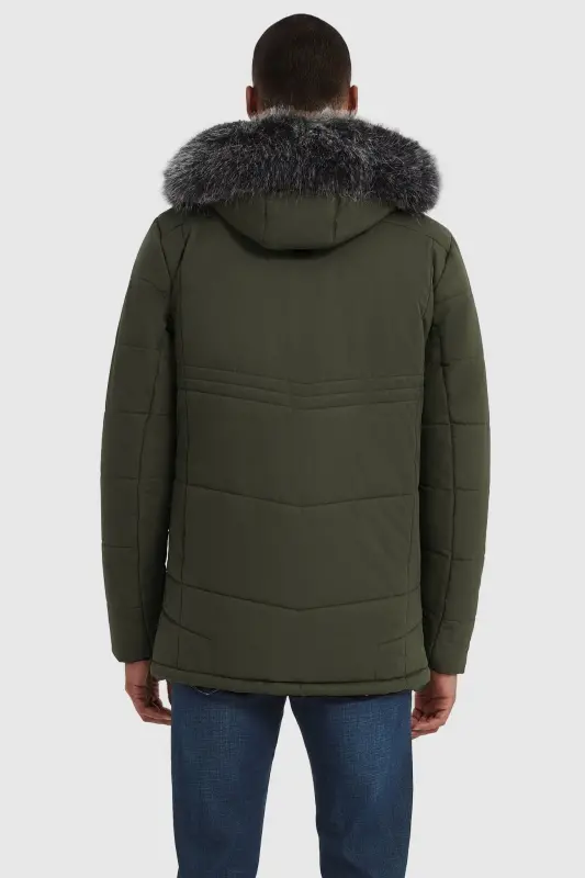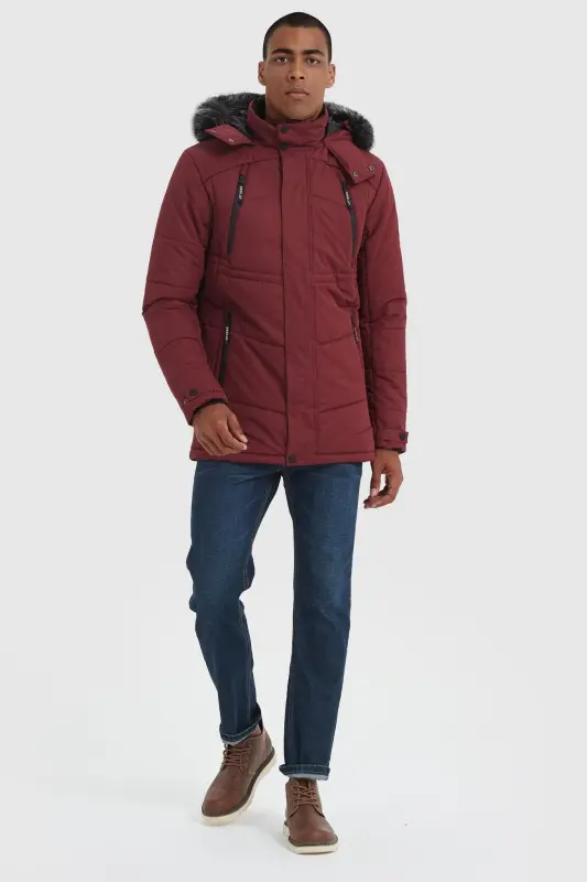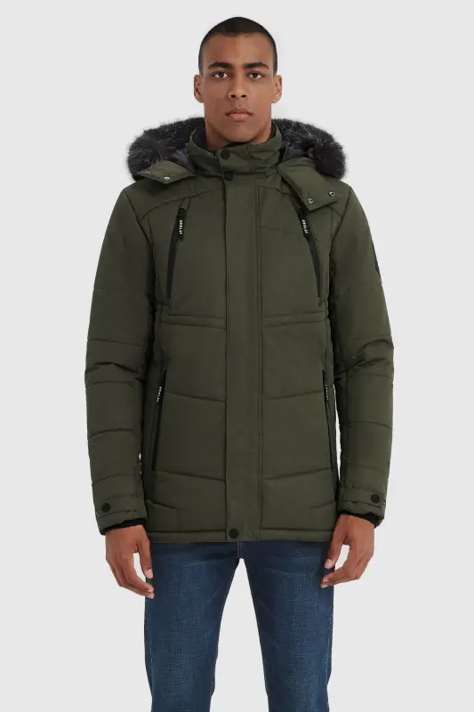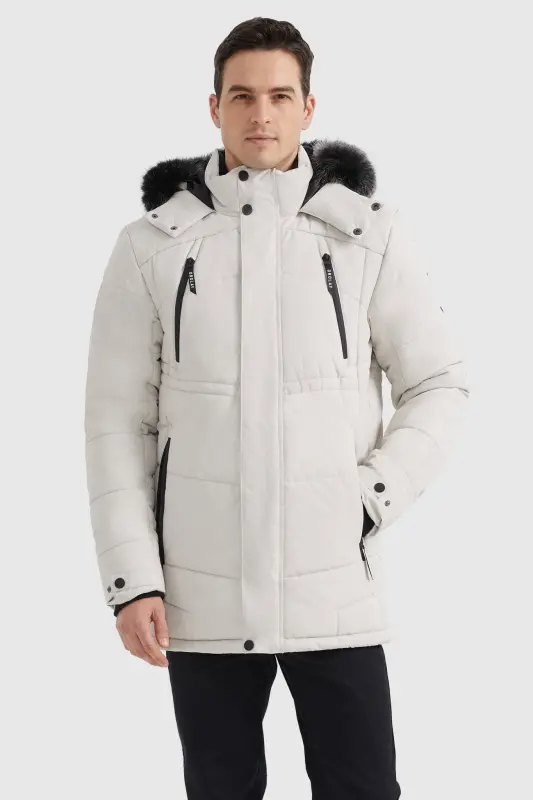 - The feature-rich parka coat has an adjustable buckle tape hood with removable fur, inner plus velvet stand collar, and features 5 fleece drawstring pockets: 2 chest zipper pockets, 2 roomy slant zipper pockets, and 1 inner pocket. Equipped with rib knit cuffs with adjustable tabs, and a drawcord-adjustable hem.