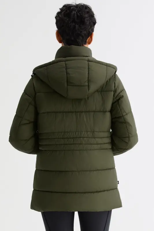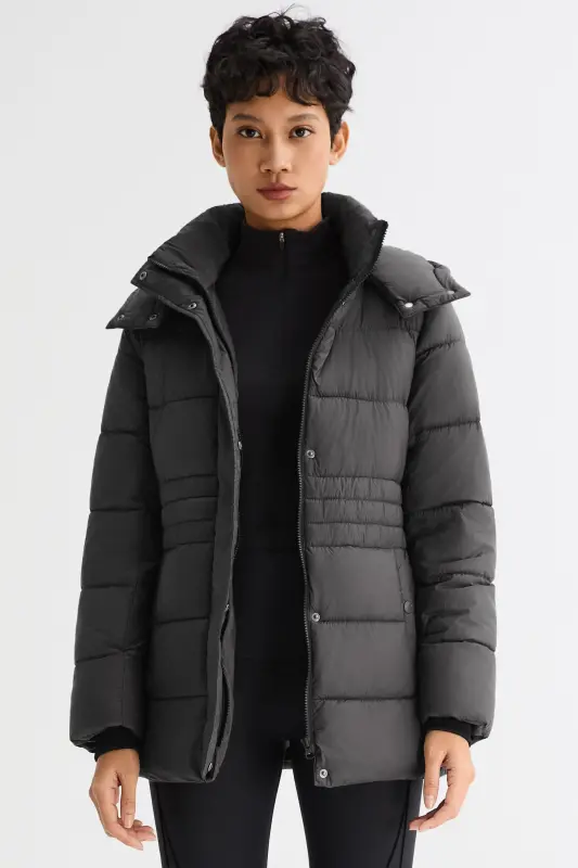 - Secure Resin Zip Closure:Front features a smooth resin zipper with hidden snap placket. Tonal logo snap buttons on the hood and side pockets add subtle detail and utility.