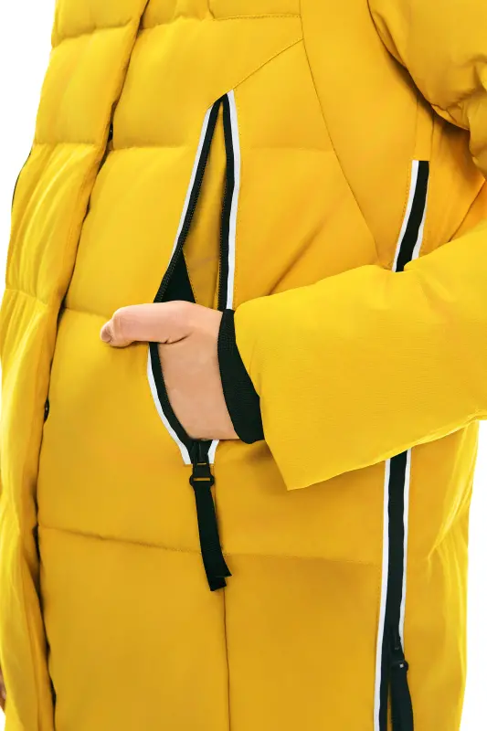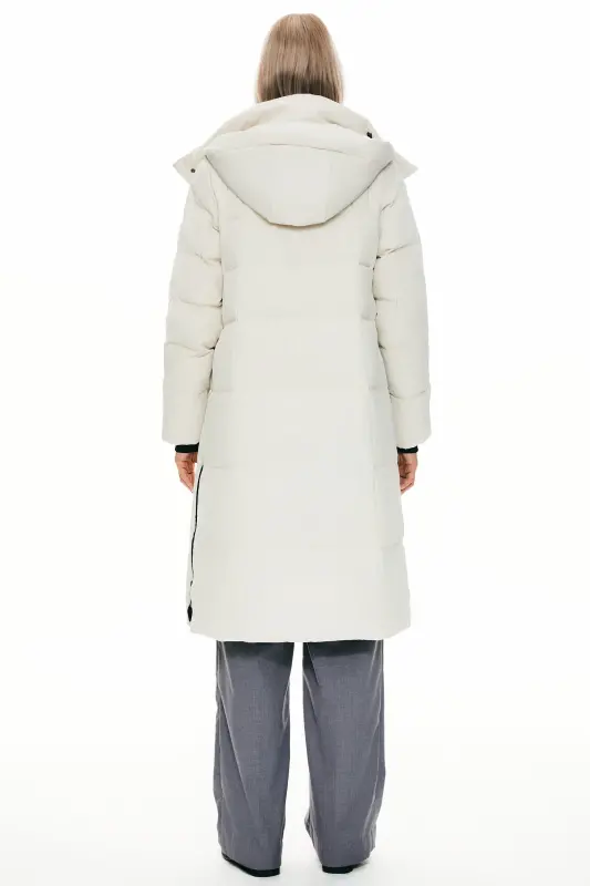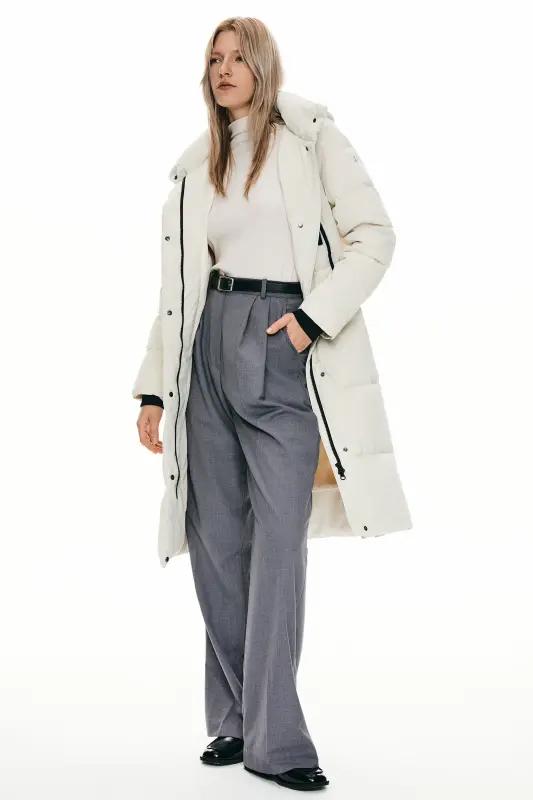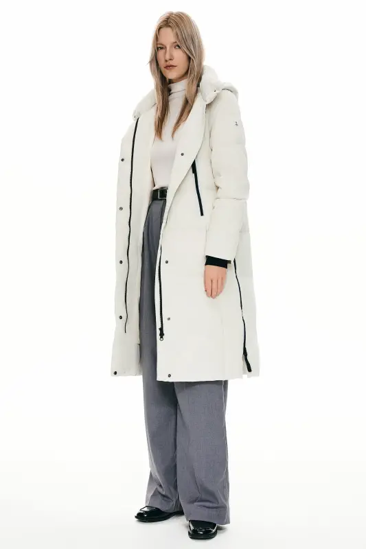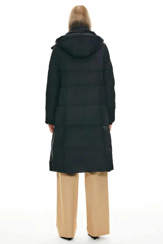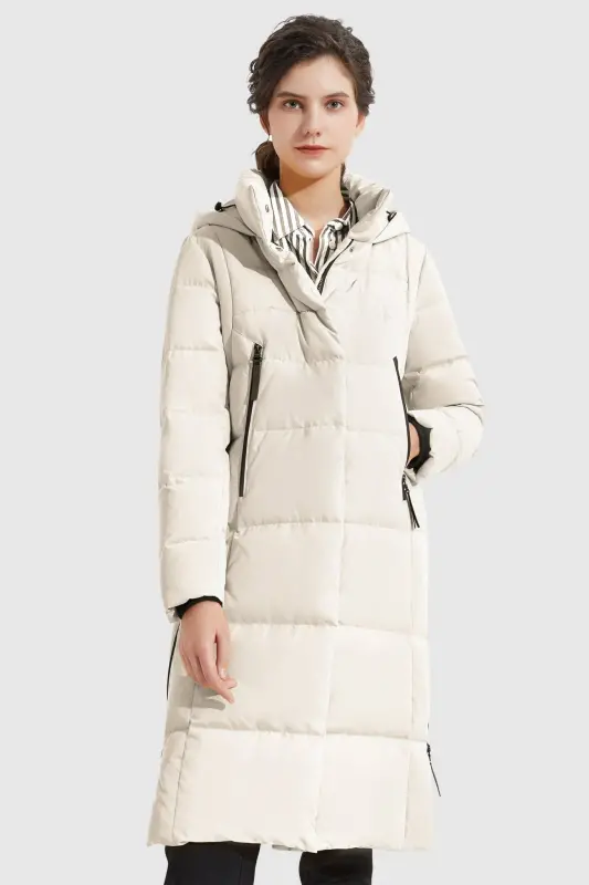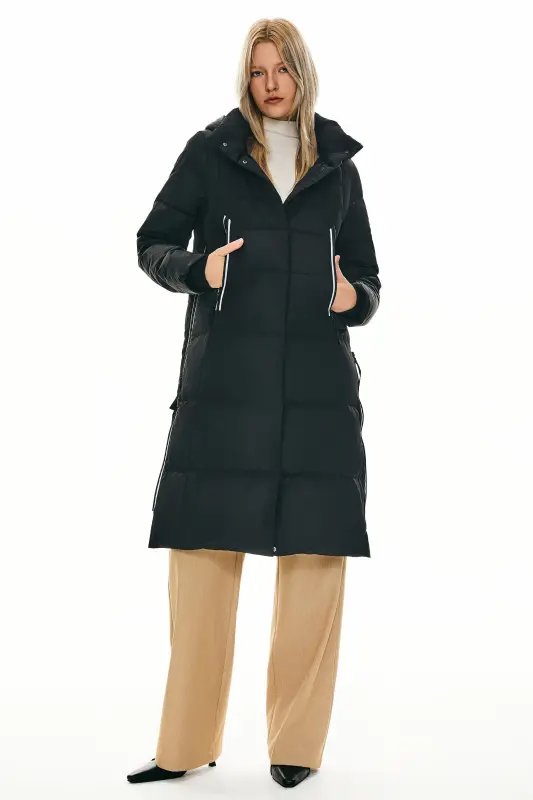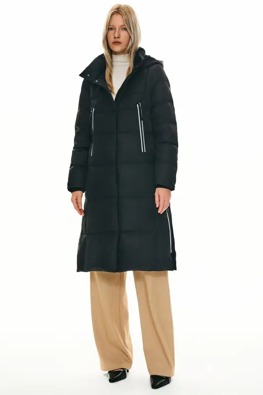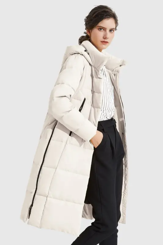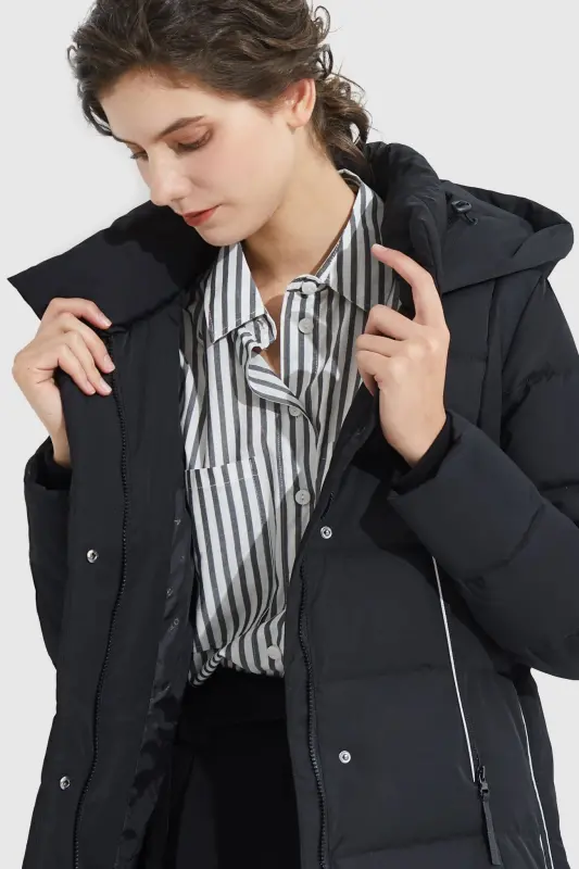 - A big adjustable hooded down coat with a loose type design and special side zippers is suitable for everyday winter use. Thick and windproof fabrics make you comfortable throughout the winter.