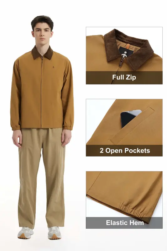 - 100% Cotton Shell: Crafted from a 100% cotton shell, this men’s lightweight jacket is windproof and durable, offering long-lasting wear for seasons to come.
