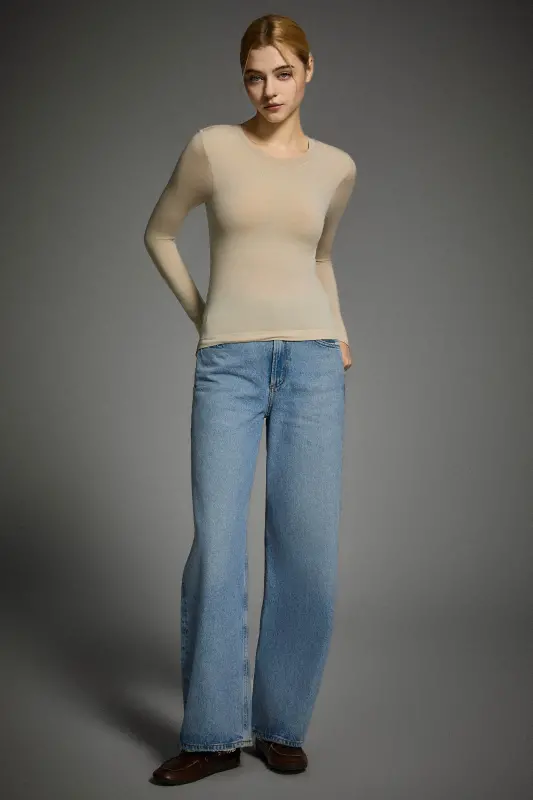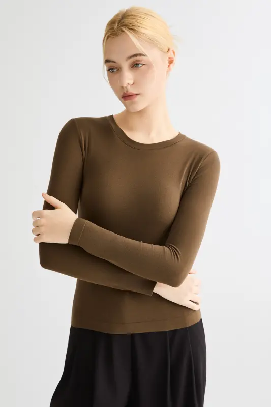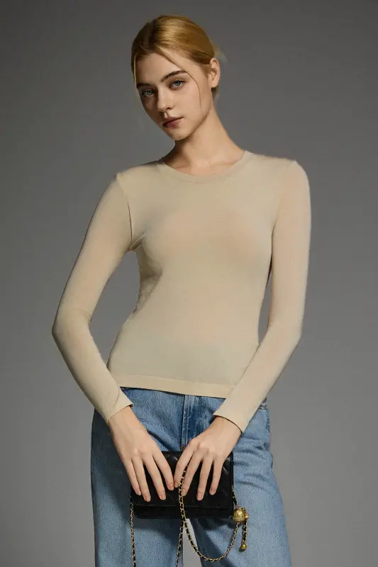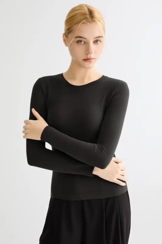 • Premium Elastic Knit Fabric:Crafted from a refined high-stretch knit with a compact structure, this long-sleeve top offers exceptional softness, durability, and resilience.  Infused with natural organic silk protein fibers, the fabric helps maintain a dry, breathable feel against the skin while ensuring a smooth, elegant finish.