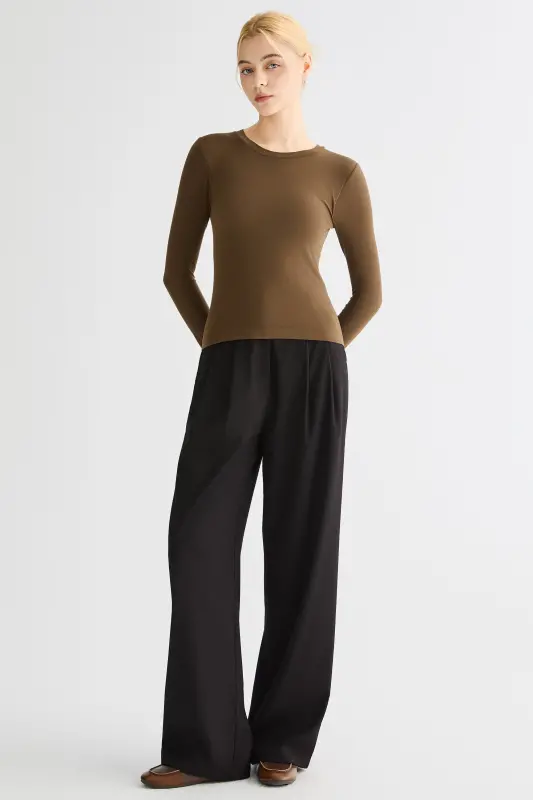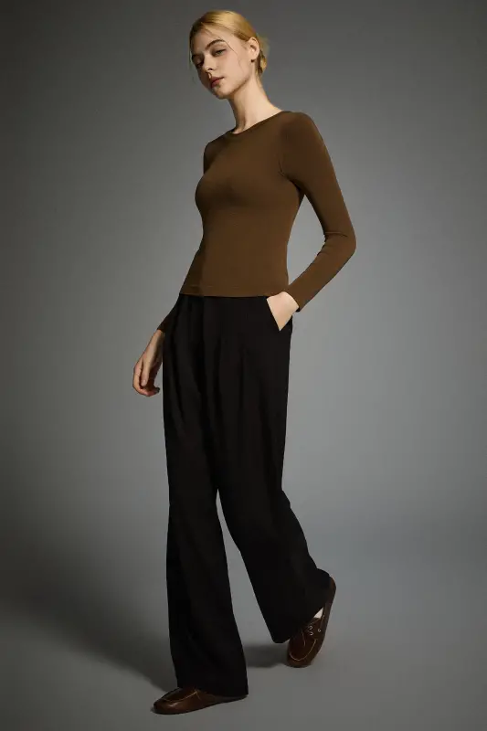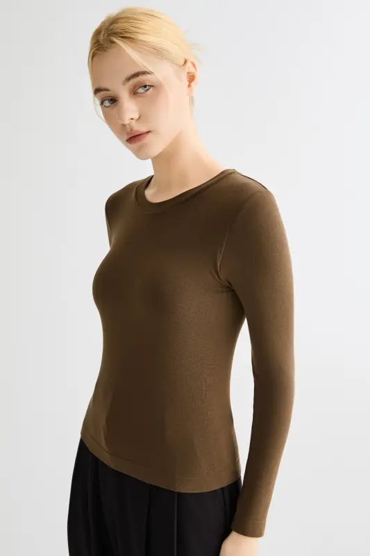 • Refined Round-Neck Silhouette:The clean round neckline and slim-fit cut accentuate a streamlined figure while retaining understated sophistication.  Thoughtful craftsmanship ensures a sleek, flattering look that moves with you.
