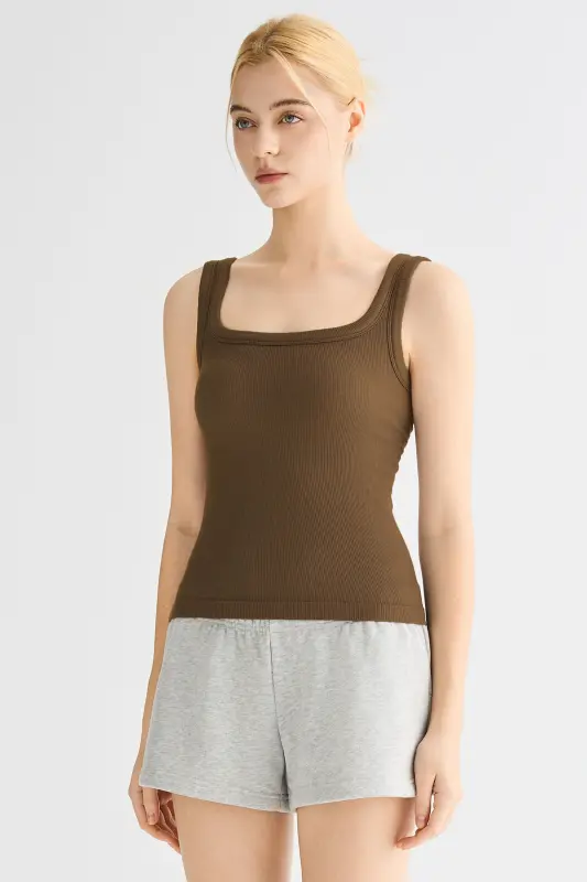 - Premium Stretch Ribbed Knit:Crafted from soft yet structured high-stretch ribbed knit, this tank top combines comfort with lasting shape retention. The reinforced outer edging ensures durability and prevents deformation, keeping the top looking polished wear after wear.