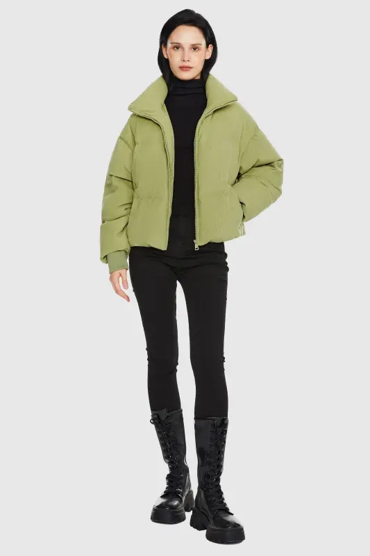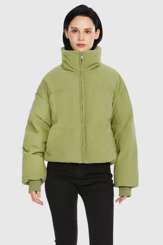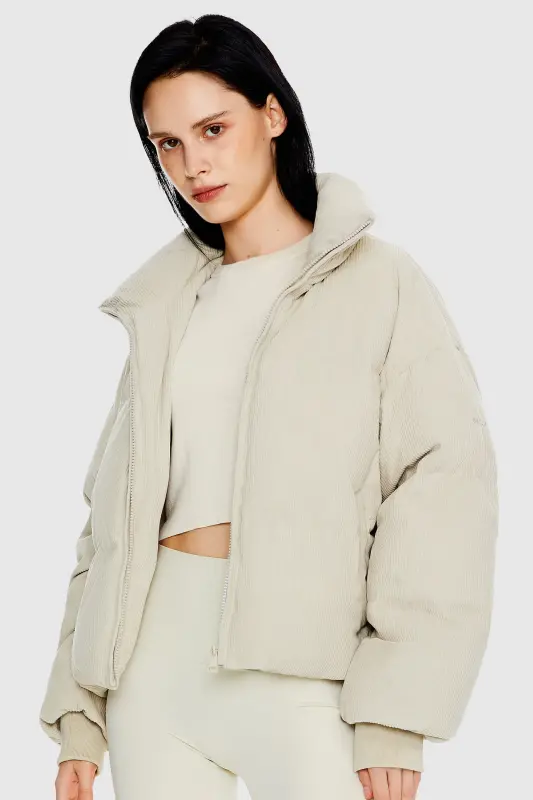 - This Puff-O O-Lab Corduroy Stand Collar Puffer Jacket features trendy corduroy fabric that adds a touch of sophistication and style to your winter wardrobe. Its unique texture and visual appeal make it a standout piece for fashion-forward individuals.