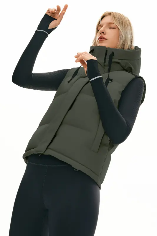 - Adjustable Details: This women’s outerwear vest features an adjustable hood and hem drawstring, allowing for a personalized fit that enhances protection against the elements.