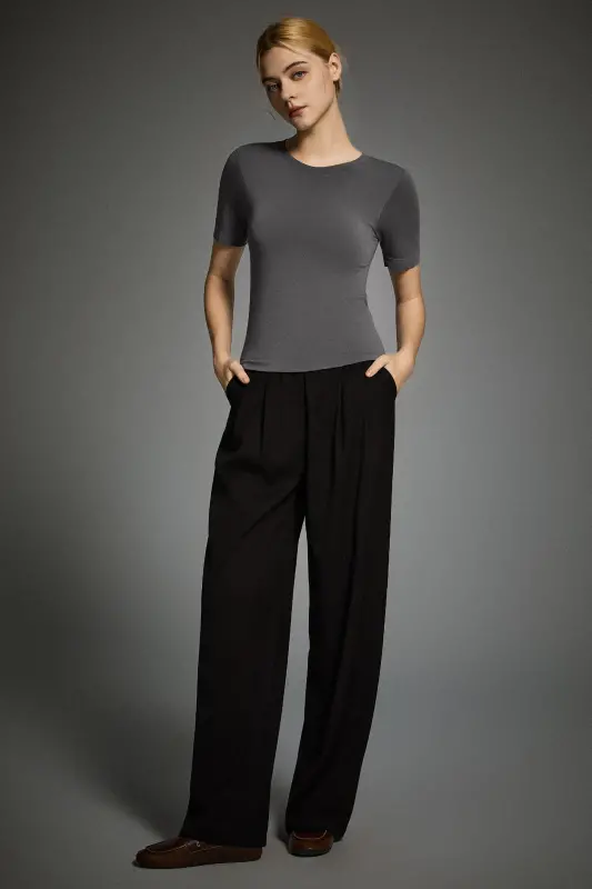 • Effortless Mix-and-Match:A timeless minimalist design that pairs seamlessly with everything from tailored trousers and jeans to joggers or casual sets.  Perfect as a base layer under blazers or outerwear across all seasons.