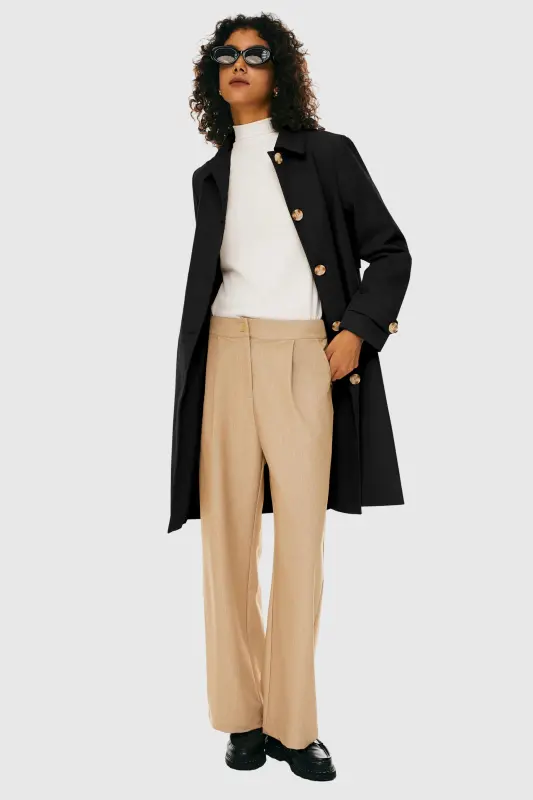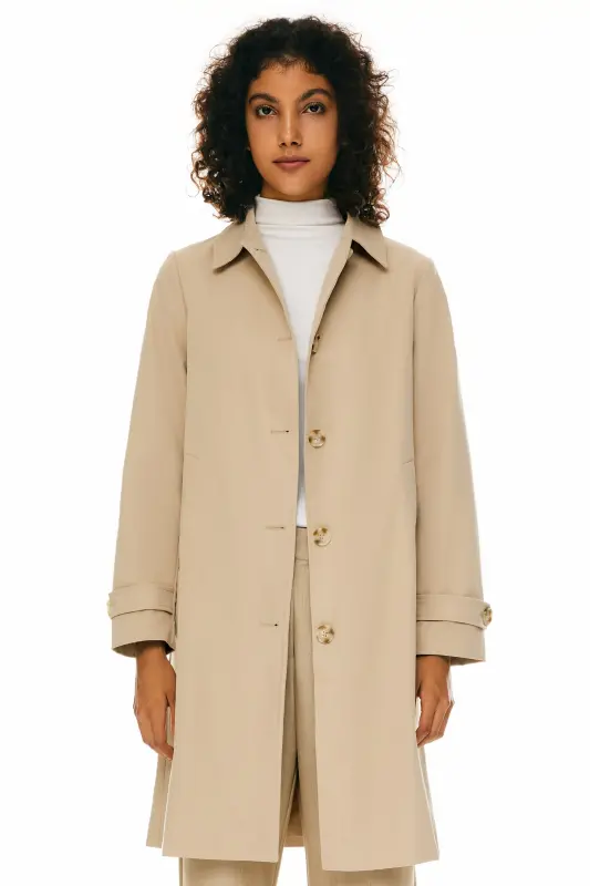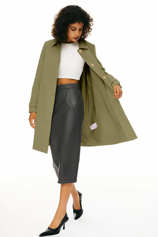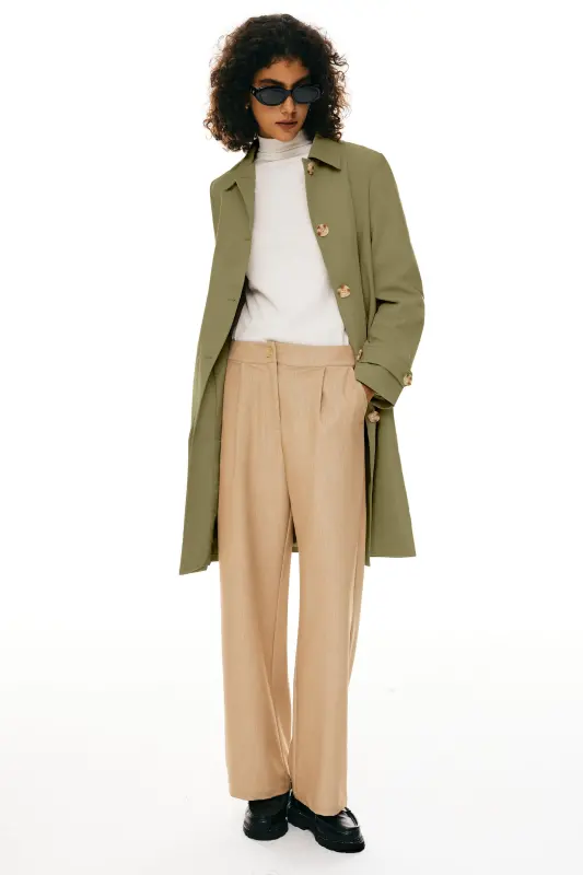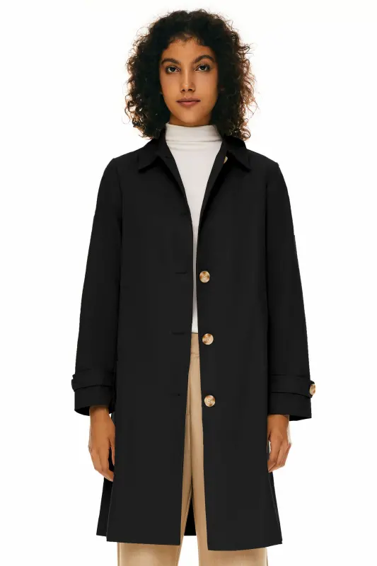 - Embrace a classic and sophisticated look with our single-breasted trench coat, designed to add a touch of timeless elegance to your wardrobe.