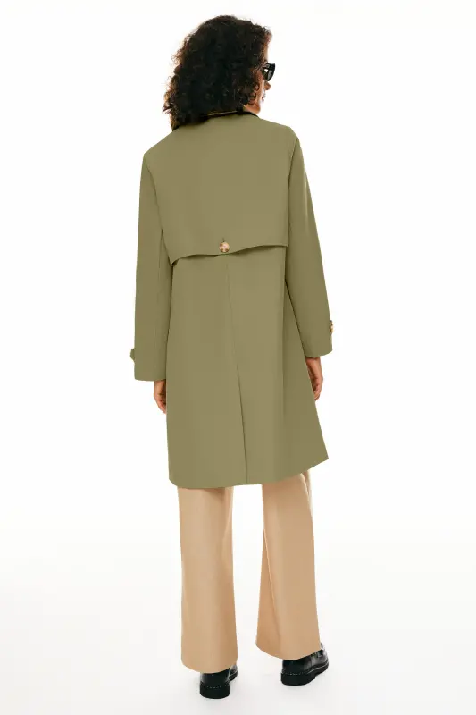 - The buttons of the trench coat are made of a unique resin material that looks unique and stylish. Diagonal pockets of the trench coat are enough to put down your phone, keys, and other daily necessities. The design of the back will make you look very elegant.
