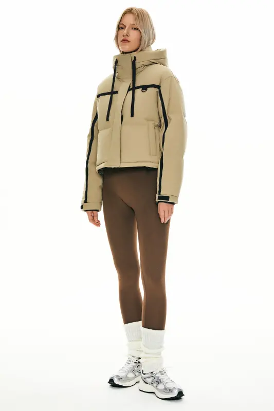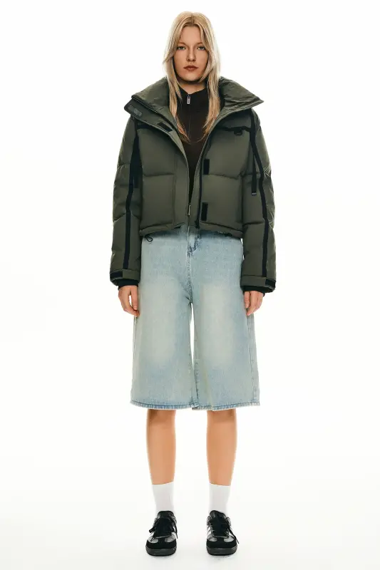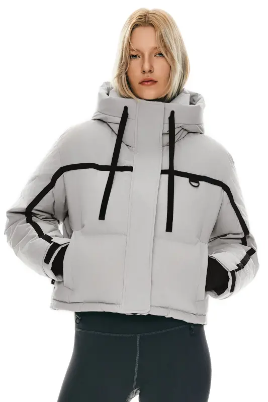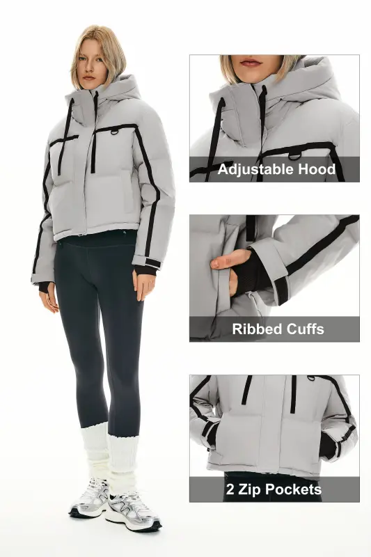 - Fashion Design: Trendy color blocking and stylish woven accents elevate this cropped women’s puffer jacket, giving your winter wardrobe a modern, eye-catching look.